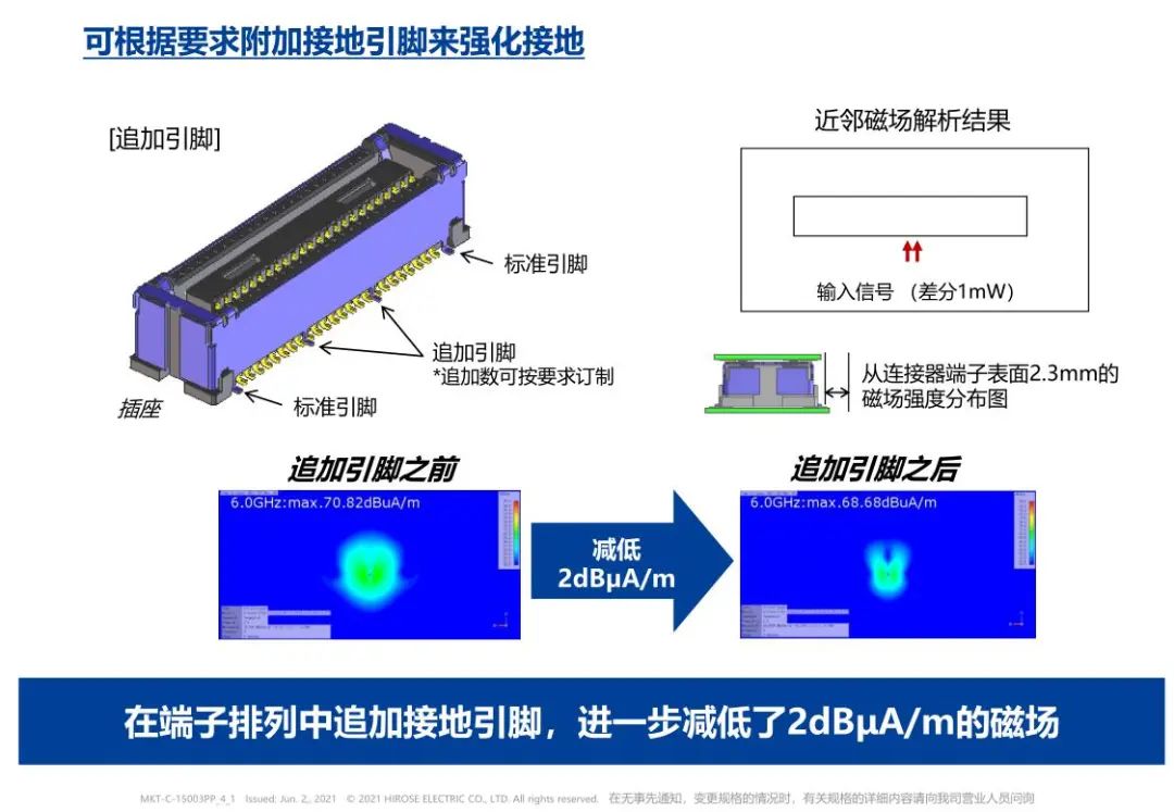 切实的接地构造 通过接地实现优越的EMI对策 进一步强化接地 检查用连接器