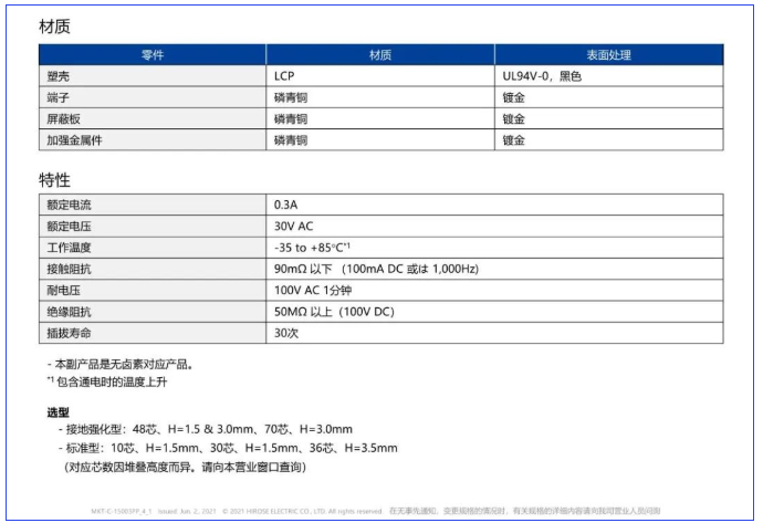 * 1 仅对应H=1.5mm产品的Type-C